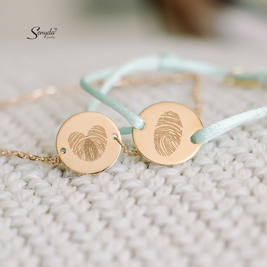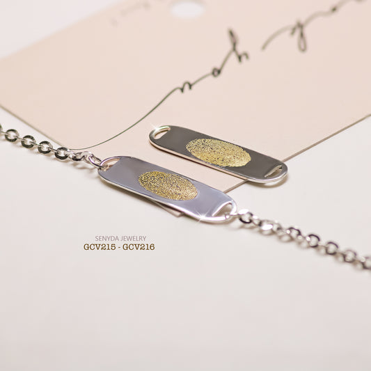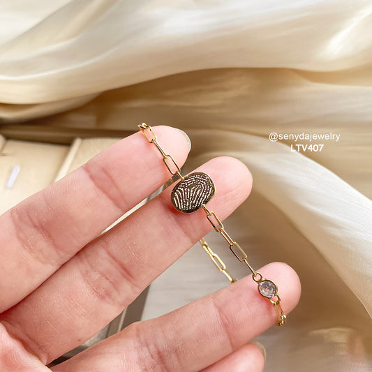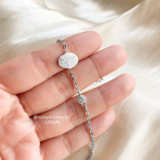 Custom Engraved Fingerprint Oval Disc Bracelet With Stone