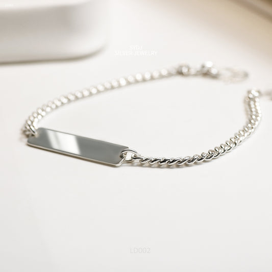 Custom Engraved Rectangular In Curb Chain Bracelet
