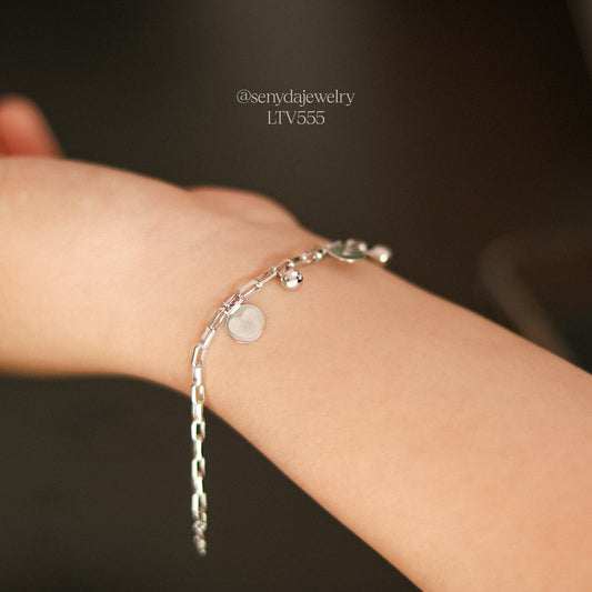 Paperclip Chain Bracelet With Custom Round Tag And Bead