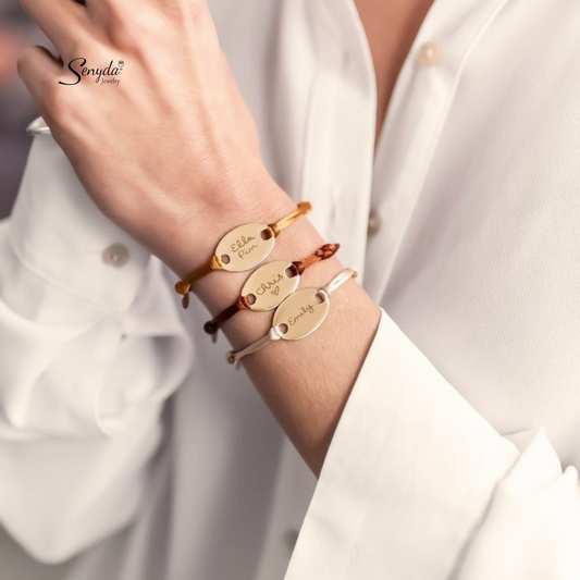 Personalized Engraved Oval Disc Cord Bracelet