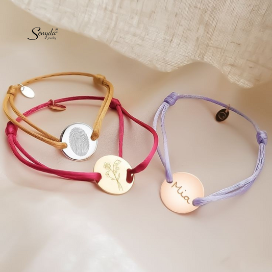 Personalized Engraved Round Disc Cord Bracelet For Baby, Kids