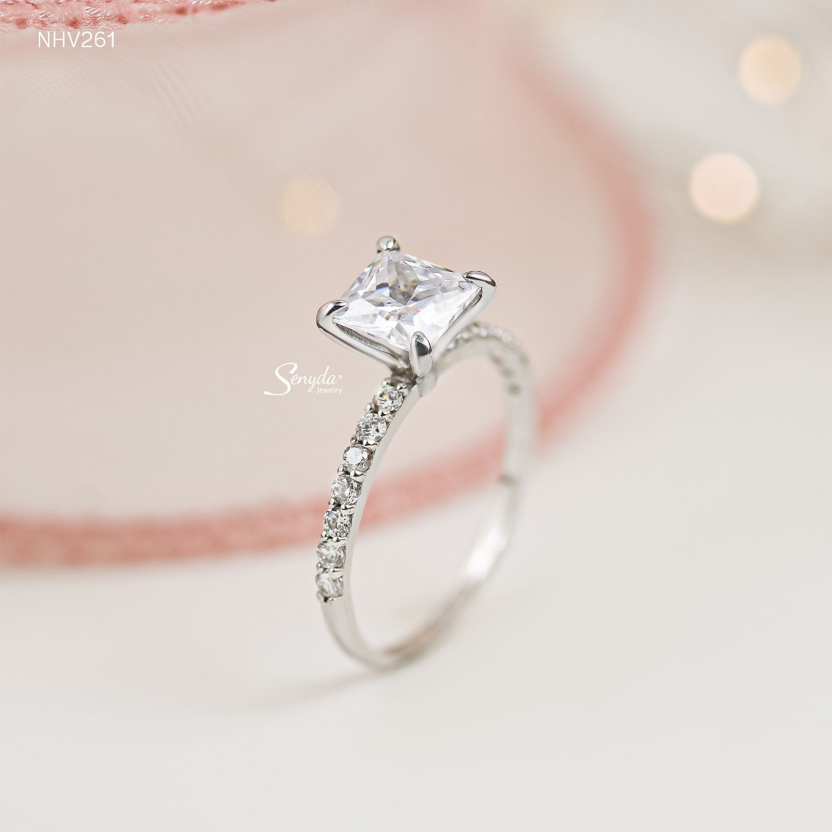 2.4. Square cut CZ white gold engagement ring with paved band - NHV261