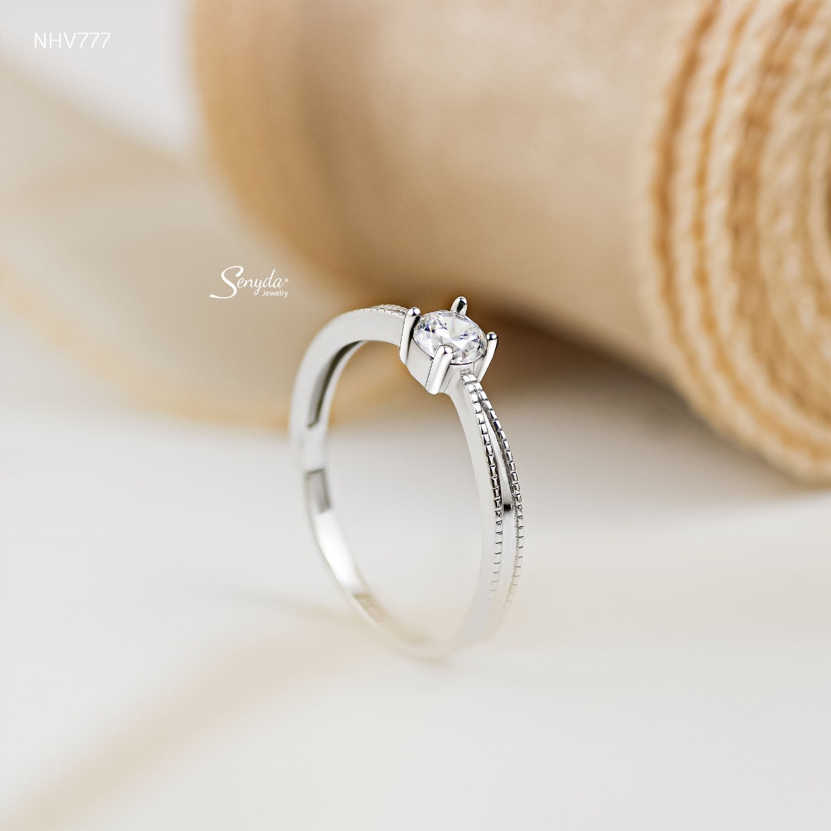 2.6. Mini bow detail 4mm CZ white gold engagement ring - NHV777