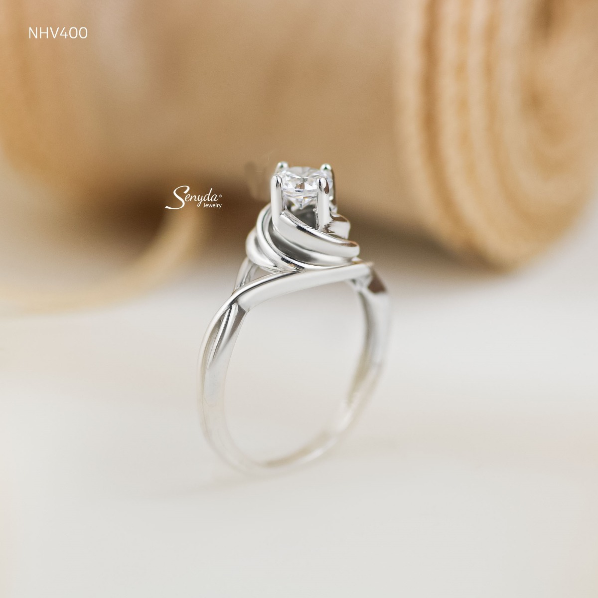This graceful design features a brilliant round-cut CZ stone at the center, delicately embraced by a smooth, rose-inspired swirl setting. The twisted rose motif adds a subtle feminine charm without relying on excessive sparkle, making it a refined yet emotionally meaningful piece. It symbolizes a love that is gentle, enduring, and beautifully wrapped around the one you cherish.